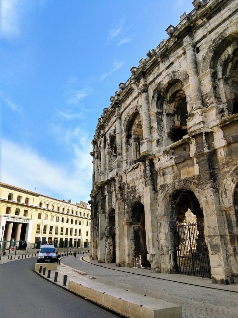 Nîmes is probably my favorite Roman French town, and at just a half hour by train from Montpellier, it’s easy to go and hang out there for a few hours or the day. All the good stuff is easy walking from the train. I love how very ordinary it all is. Turn a corner, and there’s the arena, just hanging out in the center of town.