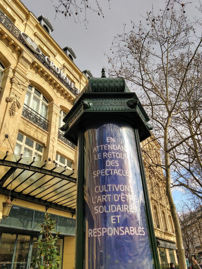 Paris is half-empty, much as it was last summer. Lovely for walking around or for getting the best spot in Luxembourg Garden, but distressing for businesses. We’re especially concerned about the fate of restaurants here. Some have adapted to carryout, others are simply closed due to Covid restrictions. We’re doing our part by ordering take away from local favorites and some new-to-us places. This is a sword I am happy to fall on, for the greater good of course. Between galleries, the living museum that is the streets of Paris, and helping keep traditional bistros in business by lunching daily, we’re getting a long overdue dose of Paris culture.
