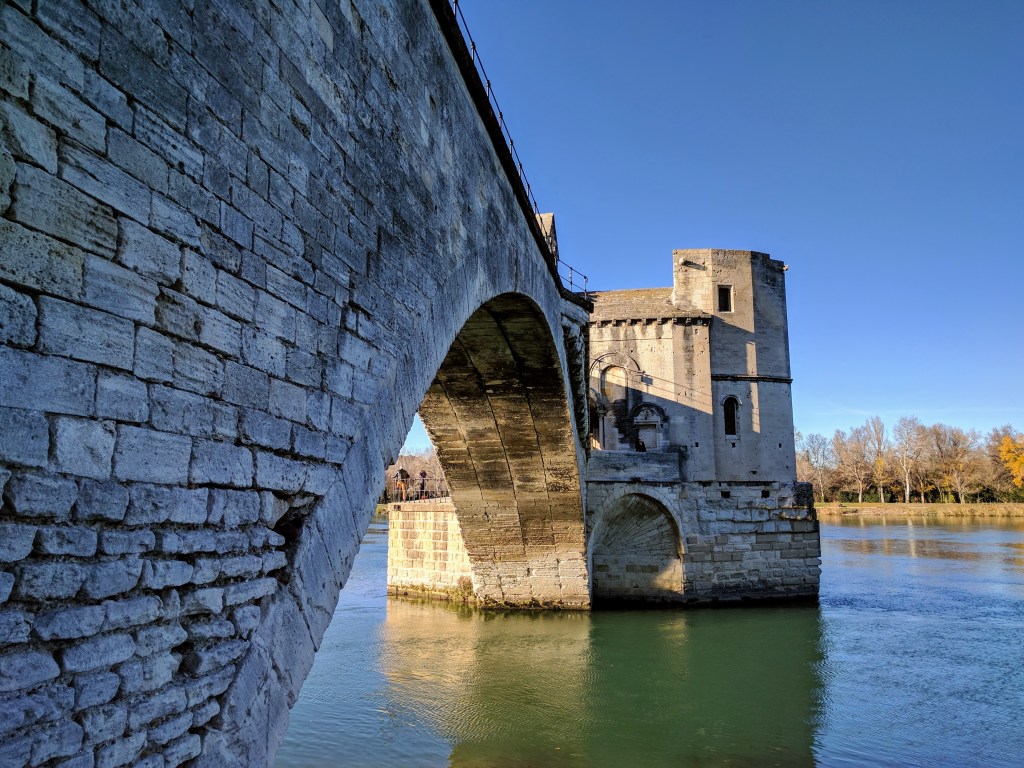 Avignon is famous for its half bridge, wholly completed in 1185. Back then it was an important crossing on pilgrimage and trade routes, given that it was the only bridge across the Rhone between Lyon and the Mediterranean. Three quarters of the bridge was destroyed in 1226 during a siege, rebuilt, and then mostly destroyed again by a flood in the early 1600s. Despite attempts to rebuild, which were interrupted by outbreaks of plague, the bridge was again half washed away. The Avignonnais gave up.