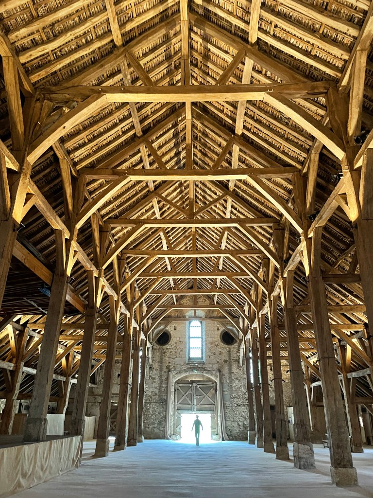 Inside the barn. The farm burned in the 1400s, leaving only the stone walls. So these oak timbers are a mere 600-ish years old.
