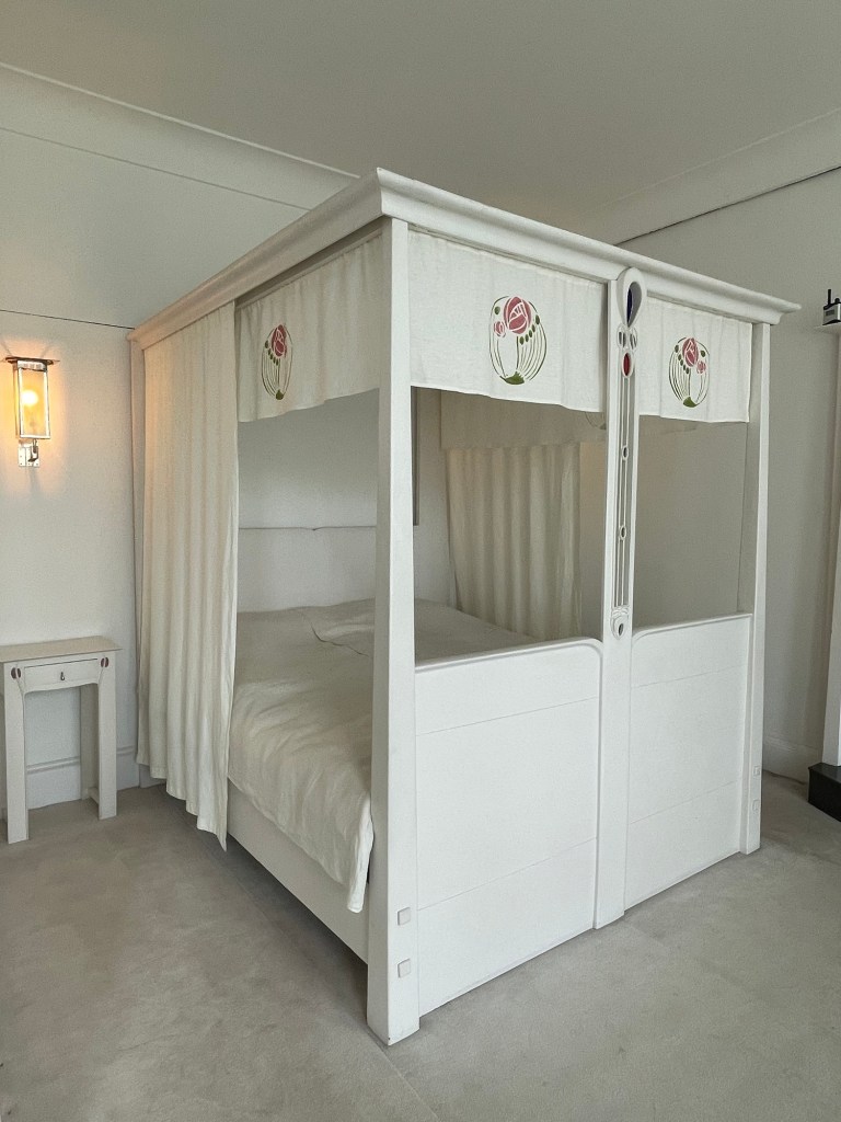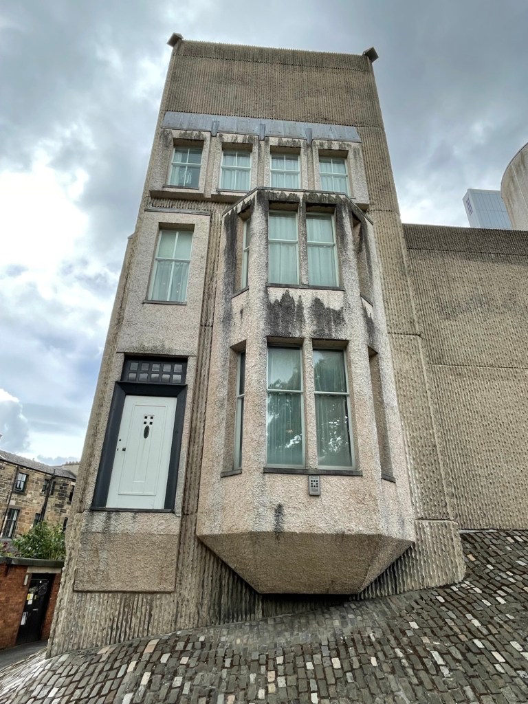 Mackintosh house. The brutalist exterior is not his design, it’s the meticulously reassembled interior that makes this worth visiting.