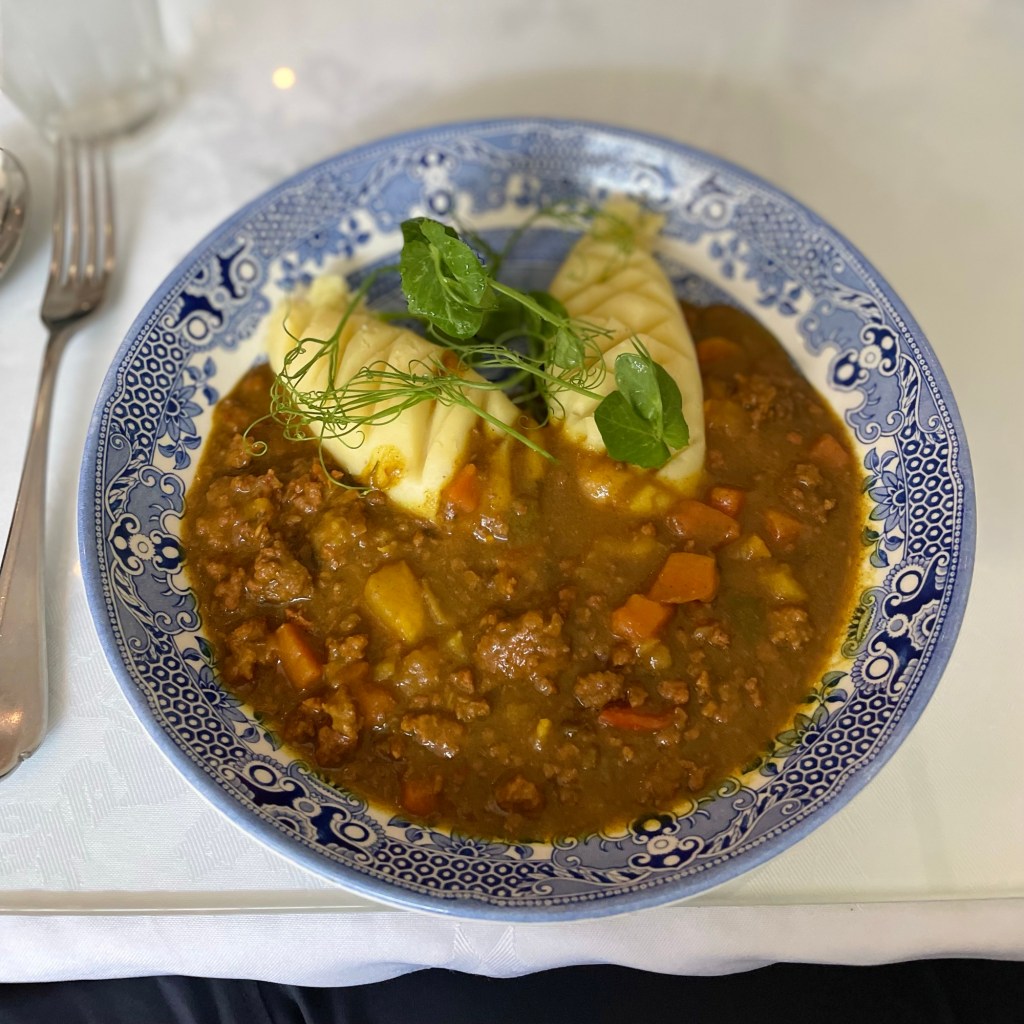 The thing to do would have been to have high tea, but having 4 pieces of cake for lunch was quite unappealing. We opted for the 1903 house special, minced beef curry, with fried haggis for an appetizer. The great British food tour.