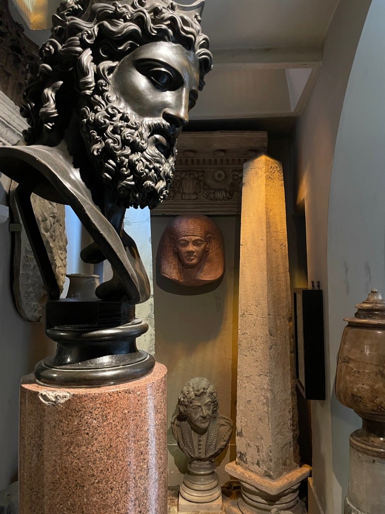 Sir John Soane’s museum is the completely intact house of a committed maximalist. Sir John collected books and antiquities from ancient Egypt and Rome. Every inch had something to look at. Oh, the horror vacuii ! We snaked around the house’s narrow corridors with all the other gawkers. It just about gave me hives. I vowed to get rid of something when I got home.