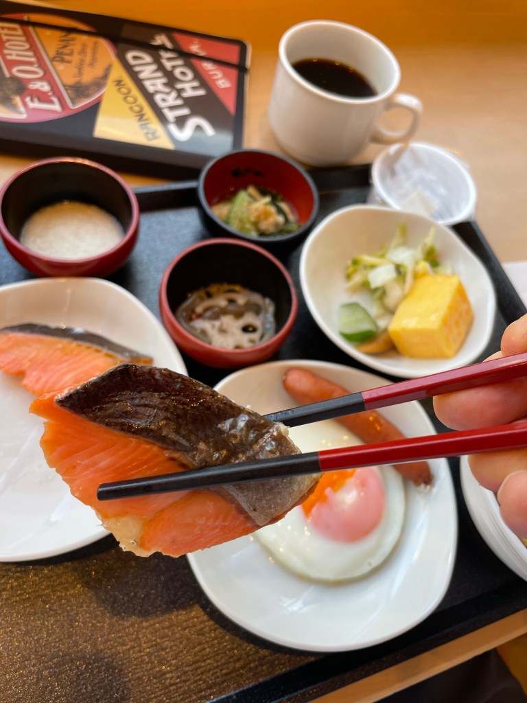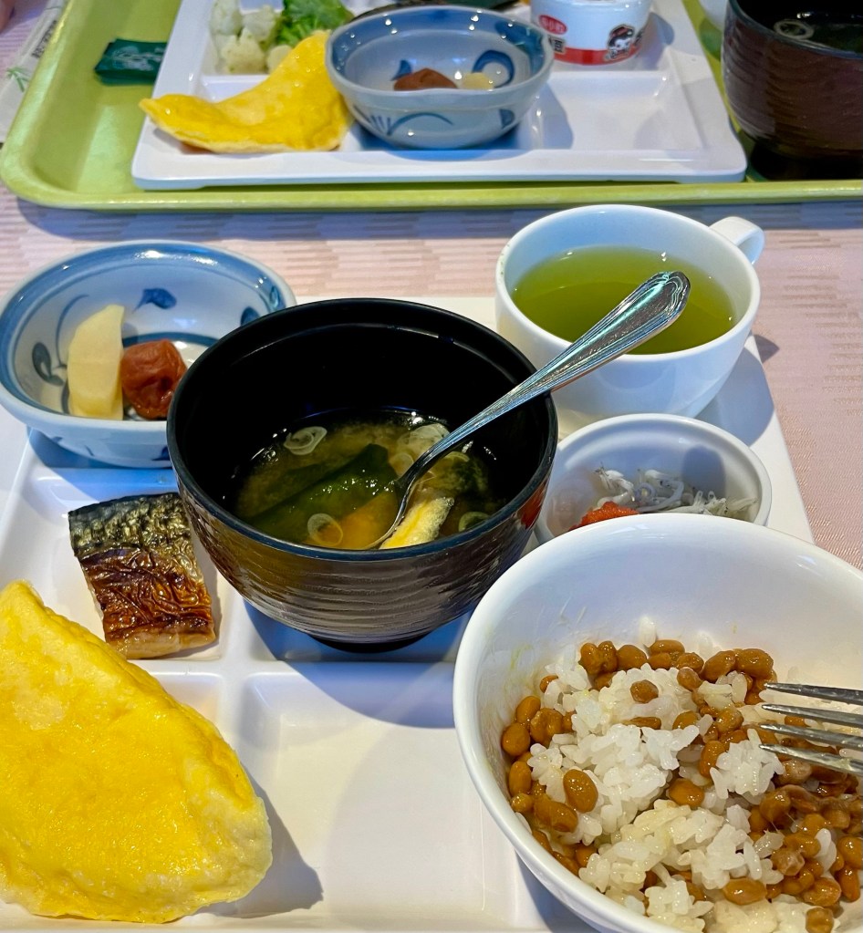 You’d be forgiven for thinking that the main attraction for us in Tokyo is the food. It’s a big part of why we’re here. Not to mention that Japanese breakfast is one of my seven wonders of the world. It consists of lots of little dishes, like burdock and lotus root, pickled plums, egg cakes, fish, and the ubiquitous miso soup, and on and on. There’s several dozens of things to choose from at our hotel buffet. No Japanese breakfast is complete without my favorite, natto, which is fermented soybeans that some find challenging. I love it.