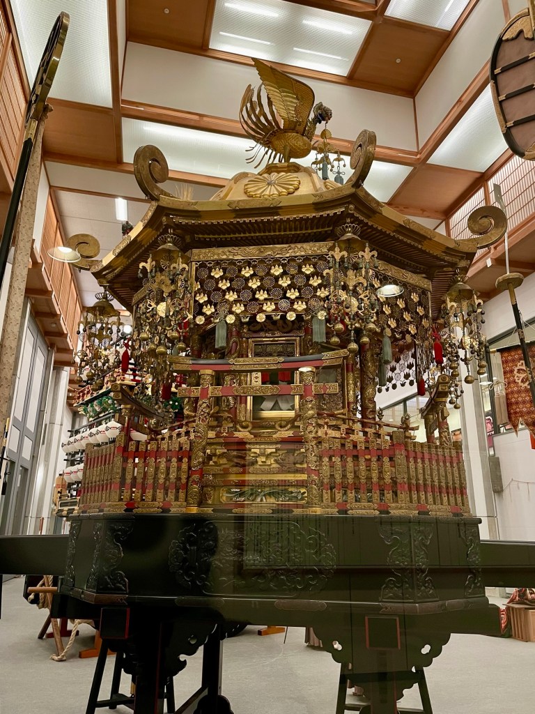Near as I can tell, there’s no religious motivation behind the festival, no mountain deities who needed to change from summer to winter quarters or some such thing. The floats were a way for the local rich guys to out-fancy each other. They’ve very intricately carved and very decked out.